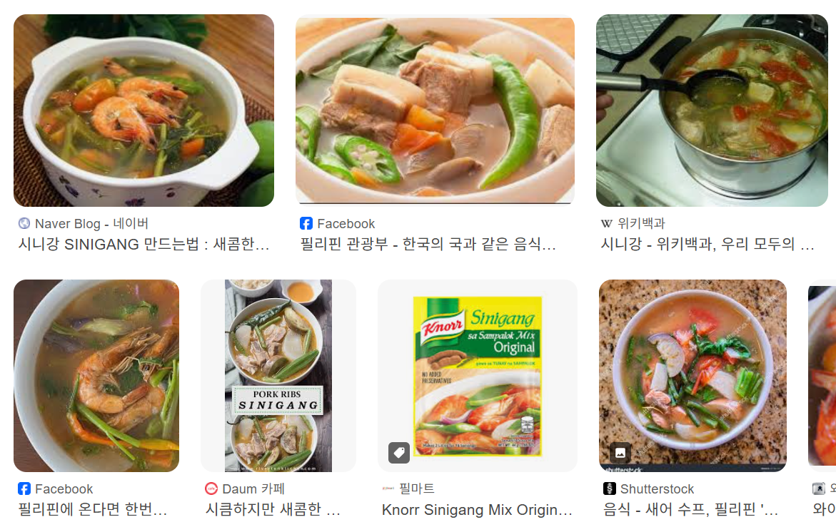 독특한 신맛이 매력적인 필리핀의 대표적인 국물 요리 '시니강'입니다. 타마린드 열매를 우려낸 육수에 돼지고기, 새우, 각종 채소를 듬뿍 넣어 끓여내는데, 첫맛은 생소할 수 있지만 먹을수록 중독되는 매력이 있답니다.